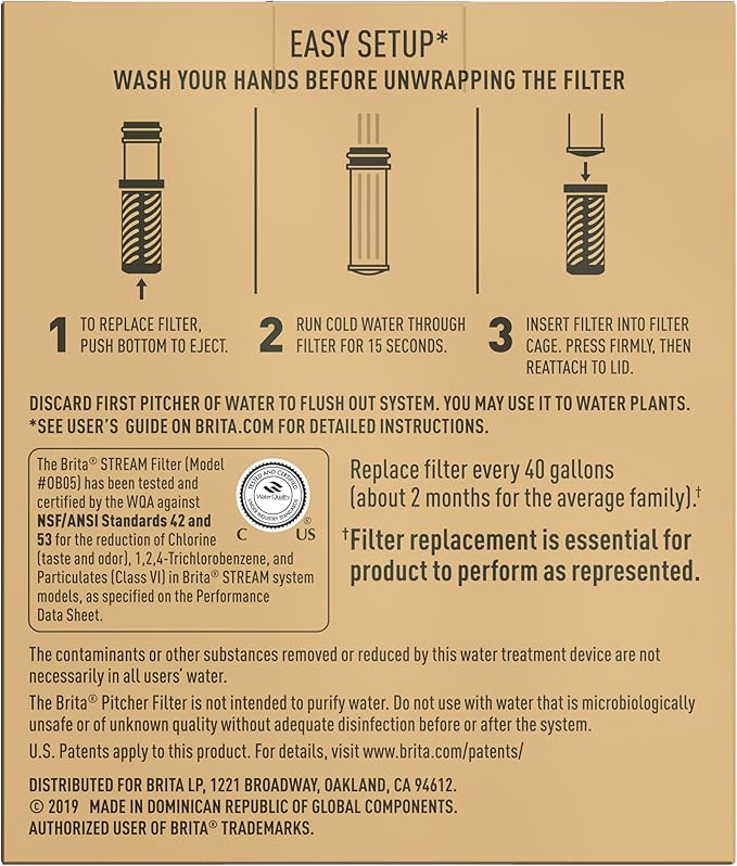 - FILTER-AS-YOU-POUR: Brita Stream filters feature patented Filter-As-You-Pour technology, which means no waiting at the sink when you fill your water filtration pitcher