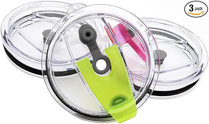 3 Packs Lids for 20oz Tumblers, CNYMANY Spill-proof Splash Resistant Straw-friendly Cover for Old Style Rtic, Ozark Trail 20 oz. Cups - Green, Rose Red, Gray
