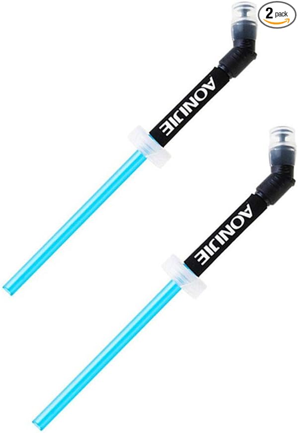 AONIJIE 2 Pcs Sports Collapsible Water Bottle BPA Free + 2 Pcs Replacement Straws Lid - TPU Soft Drink Water Kettle Foldable Flask for Hiking Bicycling Running Climbing (XZ02)