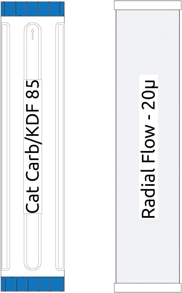 20-inch 2 Stage Pentek Big Blue Whole House Filter with Radial Flow Carbon and Catalytic Carbon/KDF85 for Rotten Egg Smell, Iron, Chemicals, Tastes, and Odors