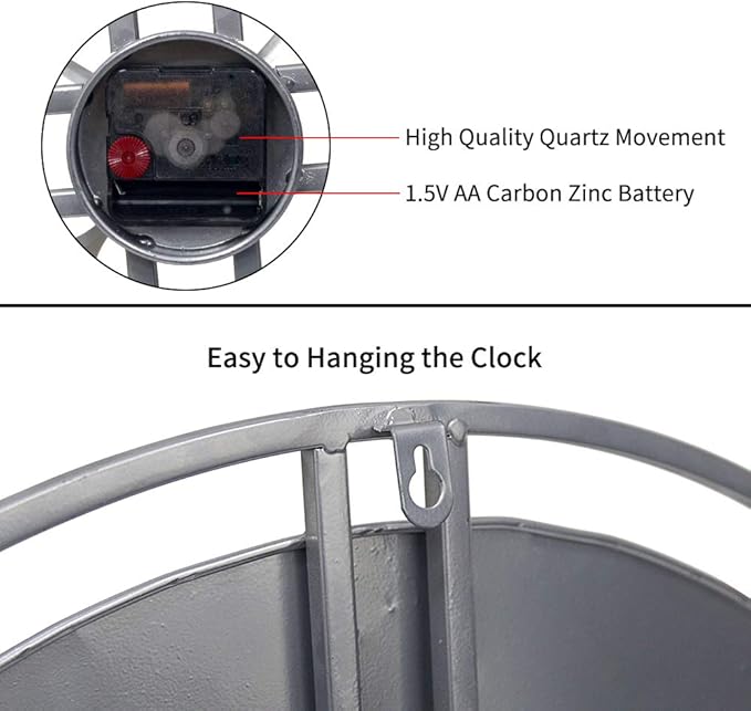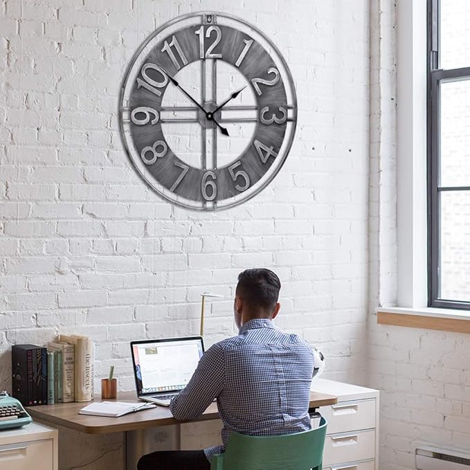 30 inch Large Wall Clock Decorative Solid Metal Retro Decor for Home Farmhouse Living Room