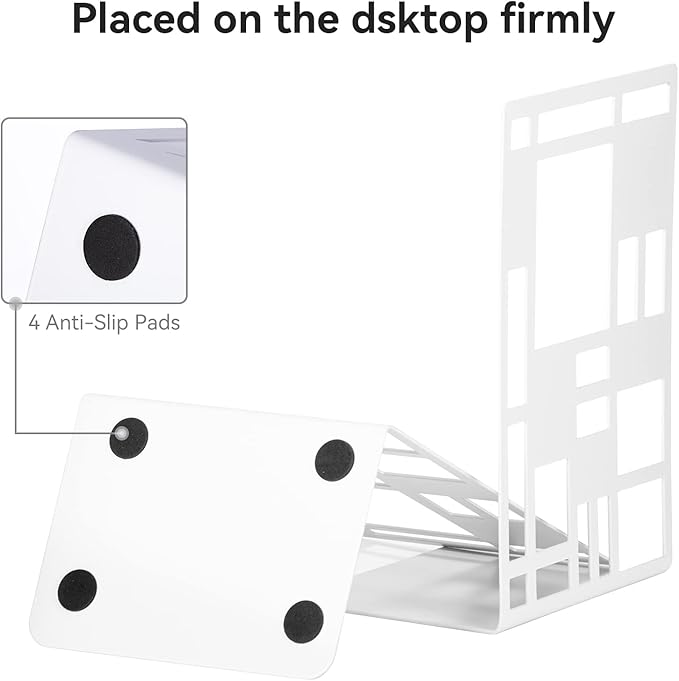 - 📚ANTI-SLIP FOAM PAD DESIGN📚: With 4 anti-slip foam pads on the bottom of each book ends decorative to keep the bookends from sliding, they allow you to move your book holder but won't scratch your desk. The corners slightly rounded, won't scratch your fingers or your books.