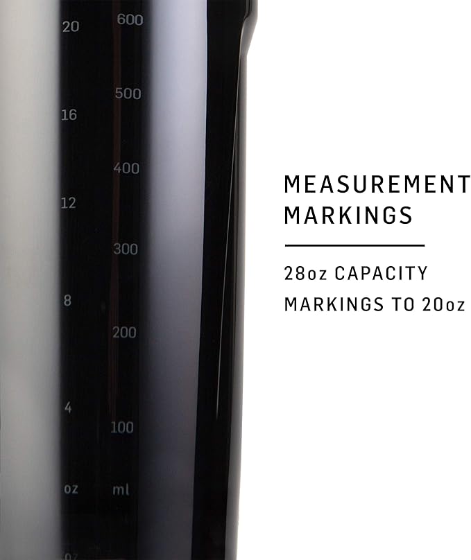 - 28-ounce capacity (note: measurements only go to 20 ounces) sleek and durable shaker cup offers plenty of room for supplements, meal replacements, or water