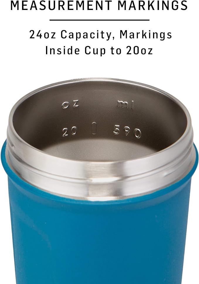 - Large 24-Ounce Capacity: Interior markings go to 20 ounces; plenty of room for supplements, meal replacements, or water.