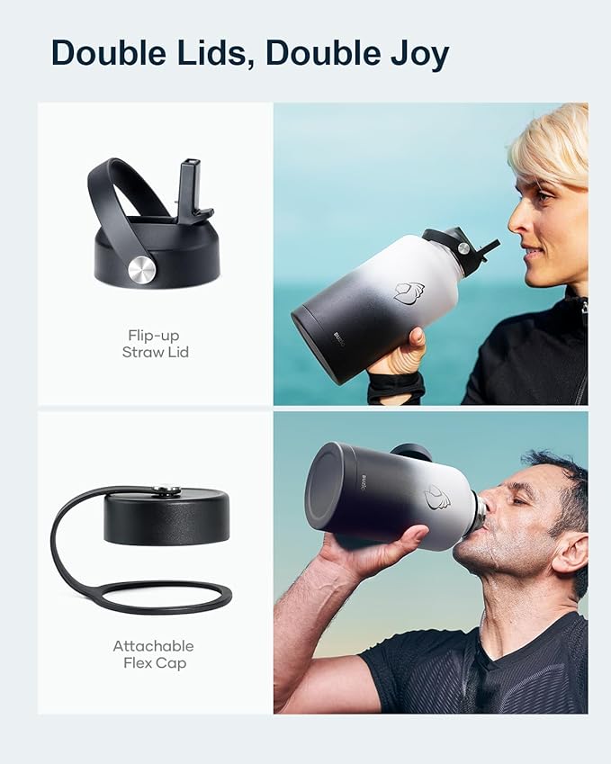 - 2 Lids to Max Its Usability: This stainless steel bottle comes with a straw lid and a flex cap to gear up your games and explorations. Both caps can seal airtight with 100% leak-proof, so you can drink without a spill on the road. *NOTE: ONLY the 22oz and 32oz T-shape bottles fit in any cup-holders*