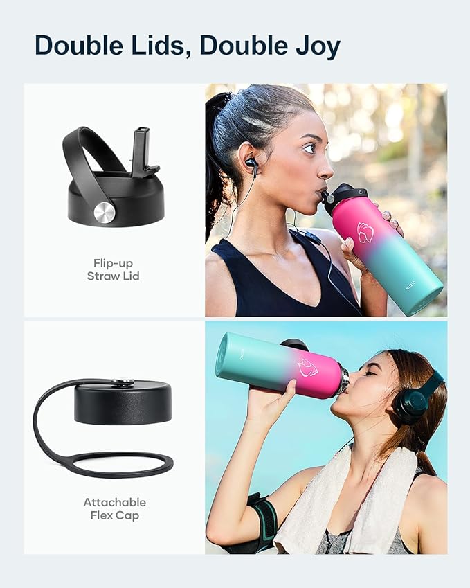 - 2 Lids to Max Its Usability: This stainless steel bottle comes with a straw lid and flex cap, the flex cap is perfect for the beach, camping and hiking, while the straw lid is suitable for cycling and road trip.*NOTE: ONLY the 22oz and 32oz T-shape bottles fit in any cup-holders*