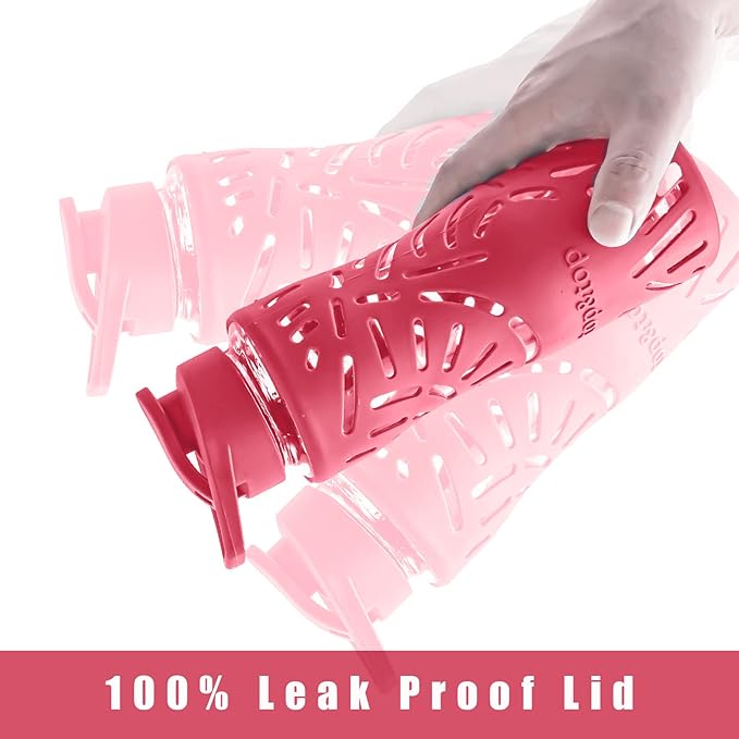 - 3 SMART SIPPING LEAK-PROOF LIDS – Each water glass bottle comes with a set of 3 different lids: Straw spout, Flip Sport Cap and Carry Loop. Each screw-on cap close tight for a leak proof seal, making this a great bottle to pack in your lunch bag or gym bag.
