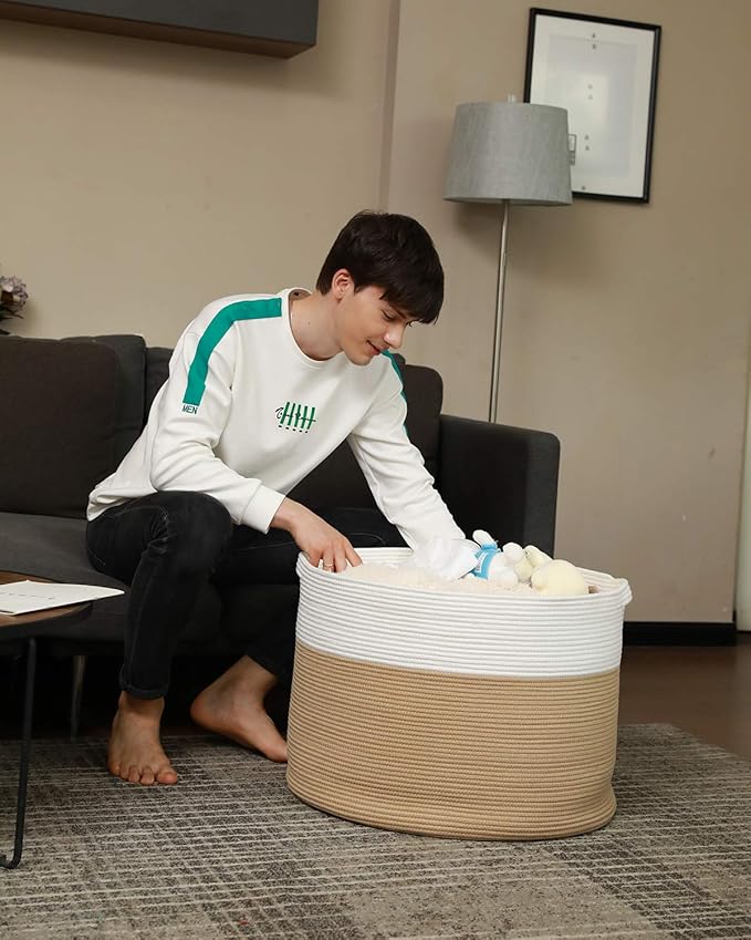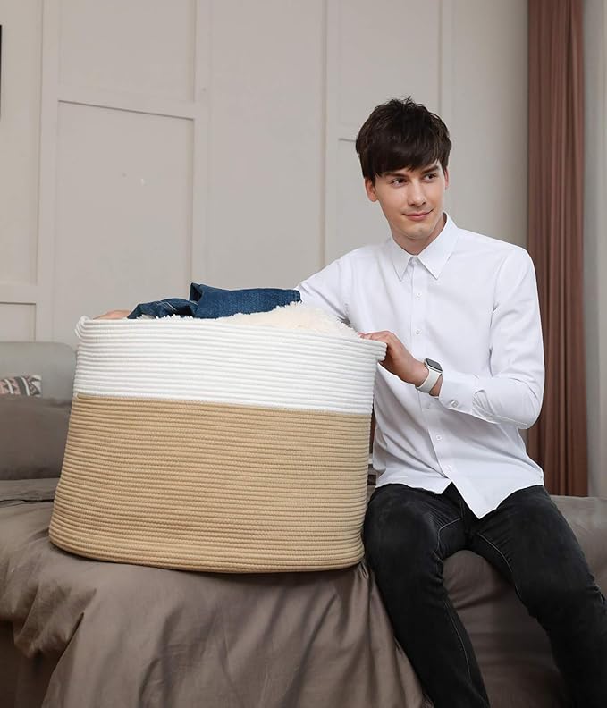 - Generous 24"x17" Size: Unleash grandeur with our cotton rope basket, designed for your most abundant storage needs. Ideal for clothes, towels, blankets, and more. Ensure your space accommodates this masterpiece before acquiring.