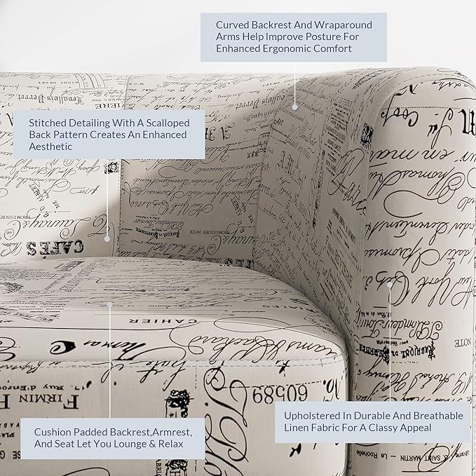 - [ERGONOMIC DESIGN] Our corner chair is designed with a curved backrest and wraparound arms, ensuring ergonomic seating with elevated comfort. Covered in breathable and durable linen, gives this accent chair an upscale look and feel.