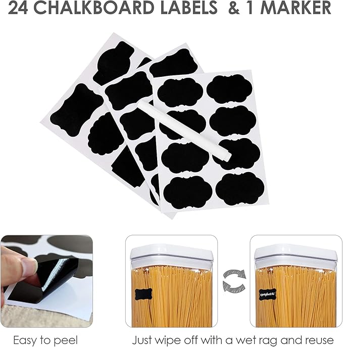 Airtight Food Storage Containers, Vtopmart 4 Pieces Large BPA Free Plastic Spaghetti Containers with Easy Lock Lids, for Kitchen Pantry Organization and Storage, Include 24 Labels (White,
