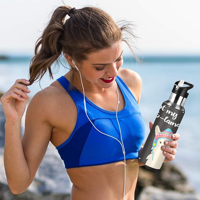 Blueangle Cartoon Llama Water Bottle with Straw Lid for Fitness Gym Camping Outdoor Sports, Wide Mouth Vacuum Insulated 18/8 Stainless Steel, 22 oz