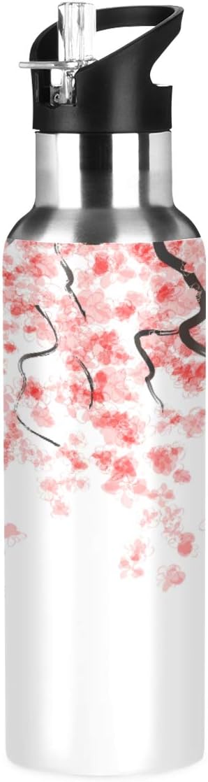 Blueangle 22oz Japanese Cherry Blossom Water Bottle, BPA Free Stainless Steel Water Bottle Leak-Proof Sports Bottle for Camping Workouts Gym and Outdoor Activity