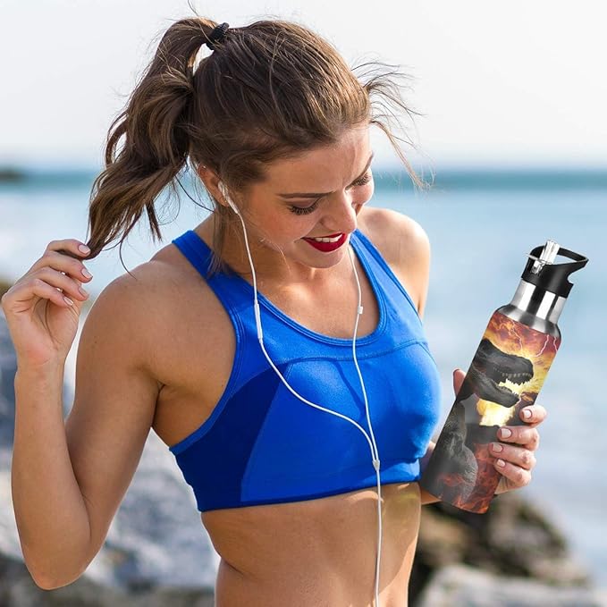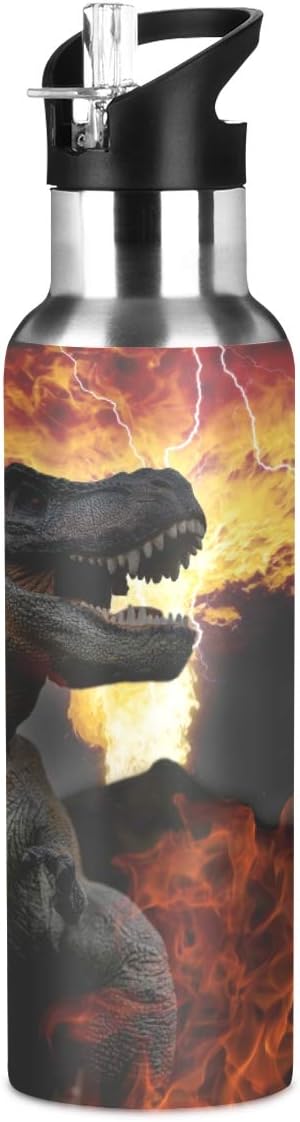 Blueangle Dinosaurs World Stainless Steel Water Bottle with Straw, BPA Free Reusable Leakproof Water Jug for Fitness Camping Outdoor Sports