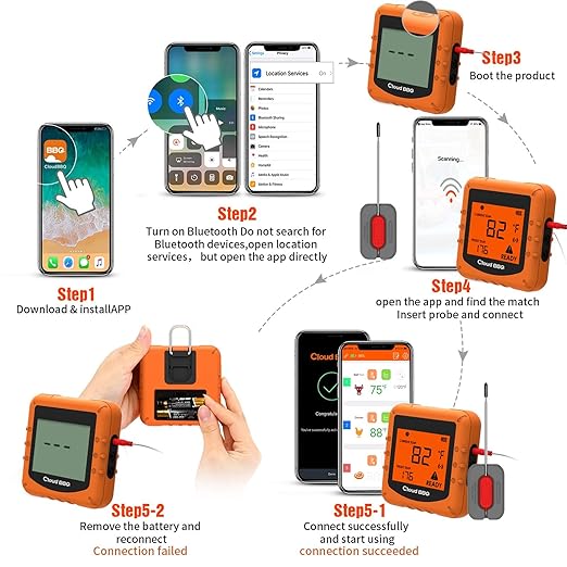 500FT Digital Meat Thermometer Wireless Thermometer with Multy Probes Bluetooth Thermometer Kitchen Thermometer for Smoker Grilling Oven (FS-09O)