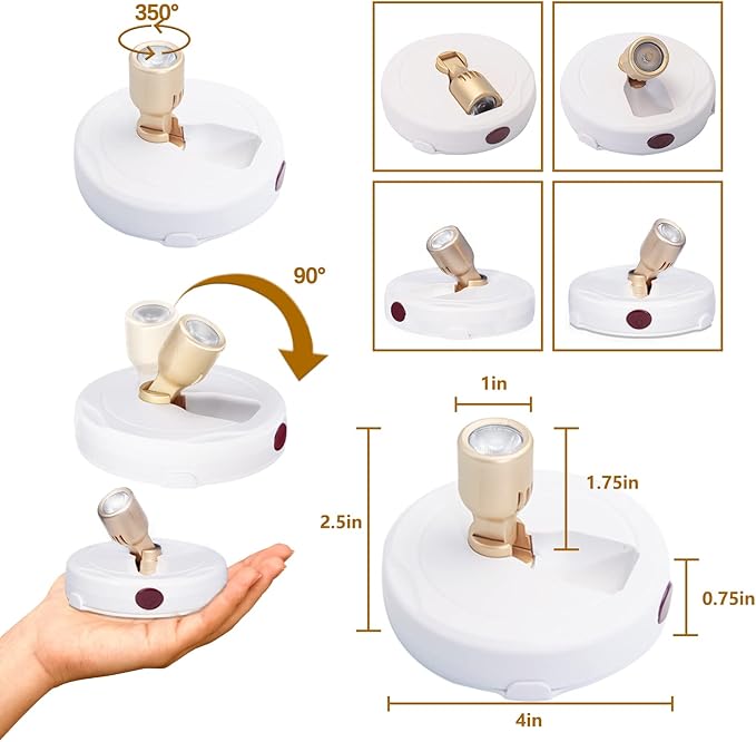 - [Preset Auto OFF Timer] - Press the timer button on the remote to set the puck lights to turn OFF automatically in 15, 30, 60 or 120 minutes, good for energy saving.