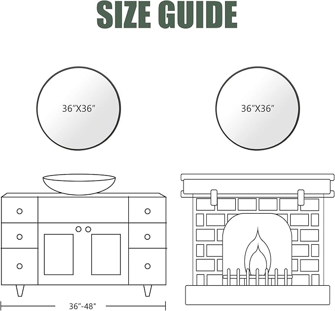- Decorative Mirror: 36 inches diameter large round mirror can visually make your home more spacious and more inviting while can serving as functional wall art, Add a glamorous view to your walls, completing your modern, rustic, or farmhouse room decor