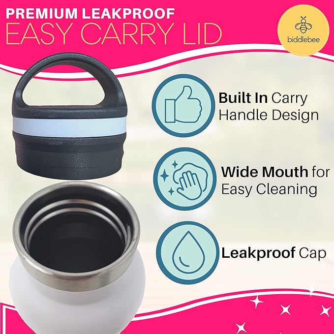 - Perfect Anywhere: The stainless steel flask style bottle will help you and your family stay hydrated. This bottle features a wide mouth opening for easy cleaning a drinking and a leak-proof easy twist off lid. The integrated handle makes this bottle convenient to carry to work, school, competition, the gym or use at home. This reusable bottle is great for girls, boys, teens, and adults. Ages 6+.