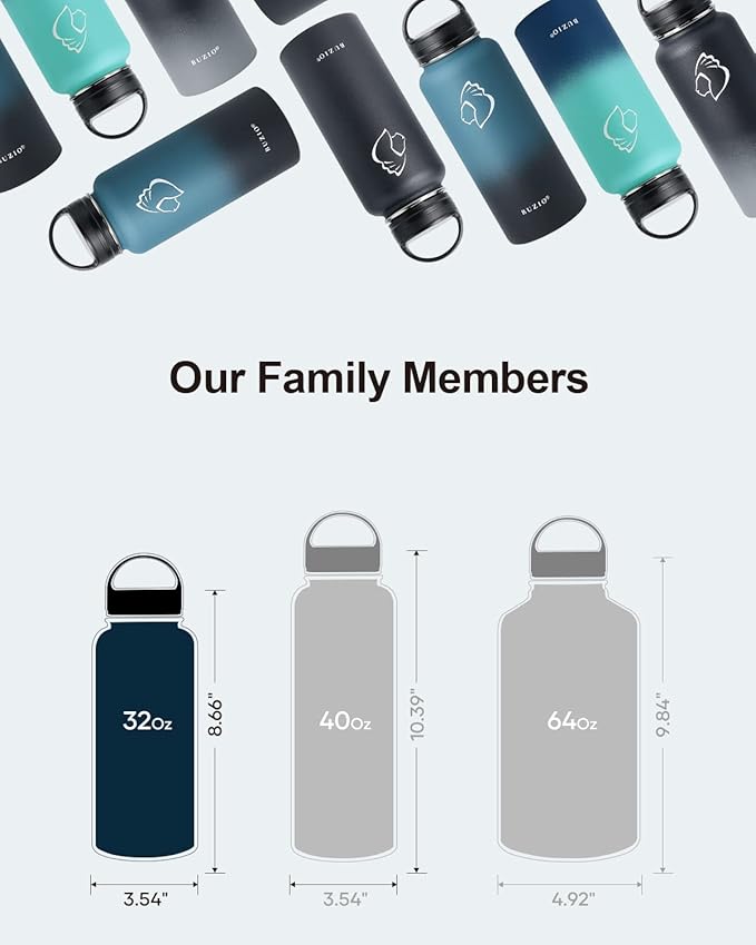 - Super Deal Combo: Buy 32oz insulated water bottle, get 7 accessories, a worry-free lifetime warranty, and friendly customer service. BUZIO water bottle with a delicate packaging box works as a perfect gift for your loved ones.