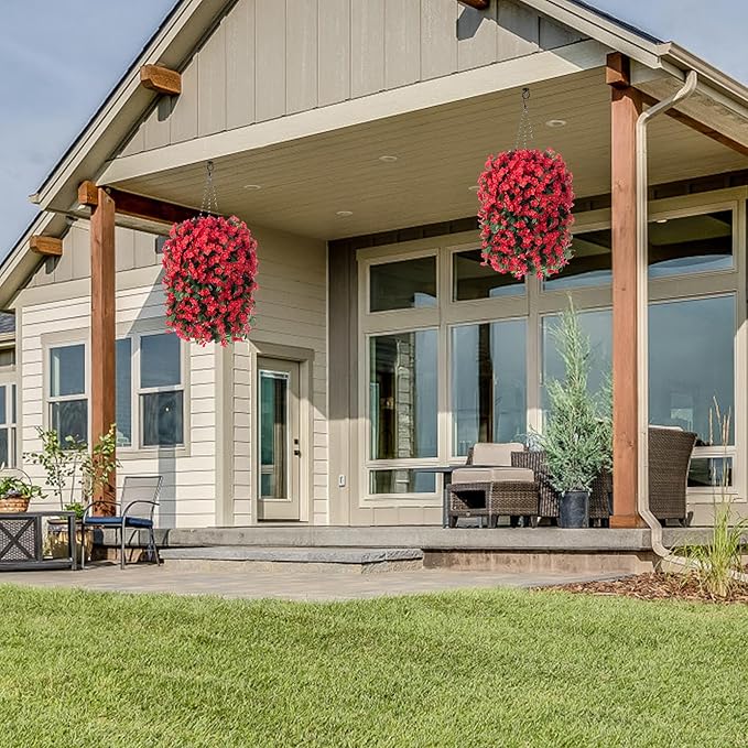 - ARTIFICIAL GREENERY DECORATION: The fake hanging flower in a basket looks real and stylish, making it the perfect hanging basket for your home, patio, balcony, garden, indoor and outdoor. It blooms all year and adds a sense of spring to your home.