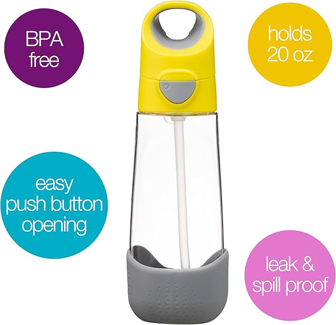 b.box 20oz Tritan Straw Bottle | Large, Modern Water Bottle with Flip Straw for Kids | Spill Proof, BPA Free (Lemon Sherbet, 20 oz)