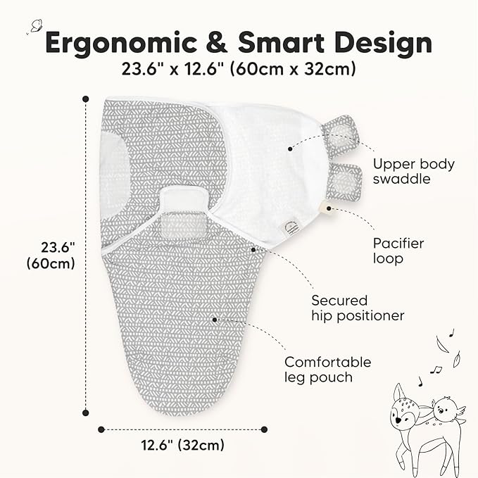 - Ergonomic for Newborn Growth - Certified as a hip-healthy product by the International Hip Dysplasia Institute (IHDI), the KeaBabies Soothe Baby Swaddle Sack provides ergonomic hip support for an infant's first 6 months of growth.