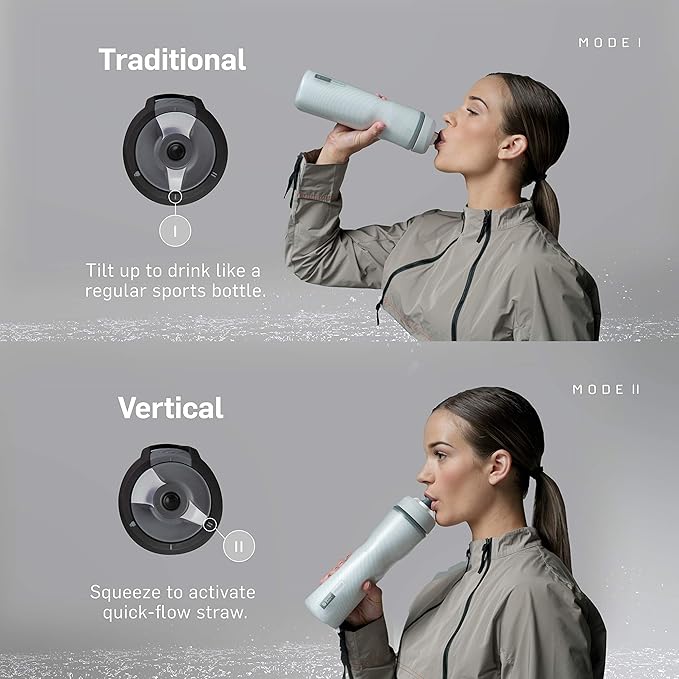 - OmniFlow 3-mode selector allows nozzle to switch smoothly between traditional squeeze mode, vertical straw drinking, and locked cap