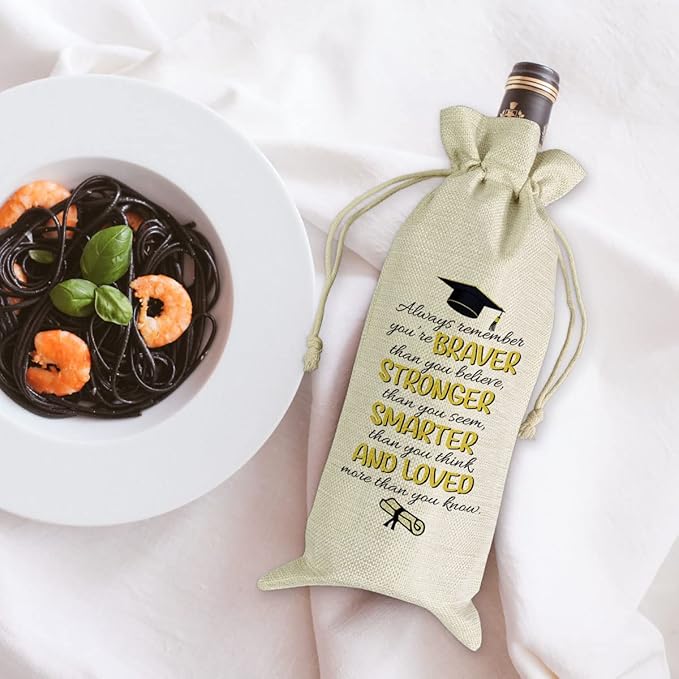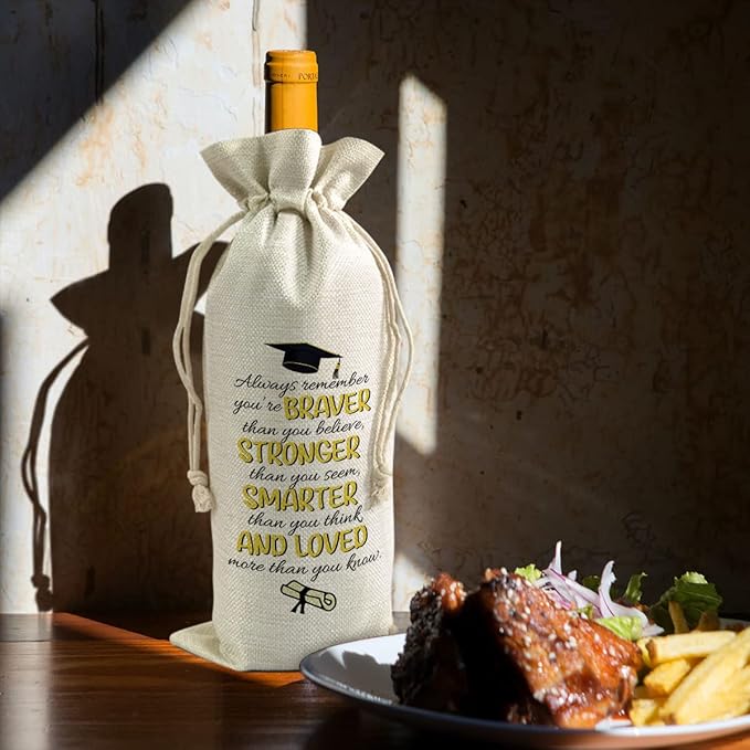 BiuNiuring Graduation Gift, Inspirational College Students Bachelor Hat Wine Bag Gift, Always Remember You Are Braver Than You Believe
