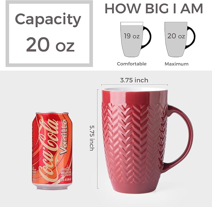 - 20OZ &VERSATILE: These large capacity coffee mug is perfect for daily use at home or in the office. With its big size, you can enjoy a normal cup of beverage without worrying about spills. This mug is not just for coffee - it's also great for tea, soup, beer, cocoa, and more