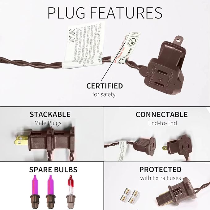 - Safty and Easily: High quality UL certified products ensure the safety of you and your family, Decorate with 100 purple incandescent mini lights with brown wire will give a soft festive feel to your halloween.