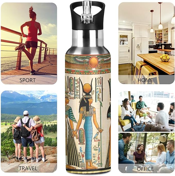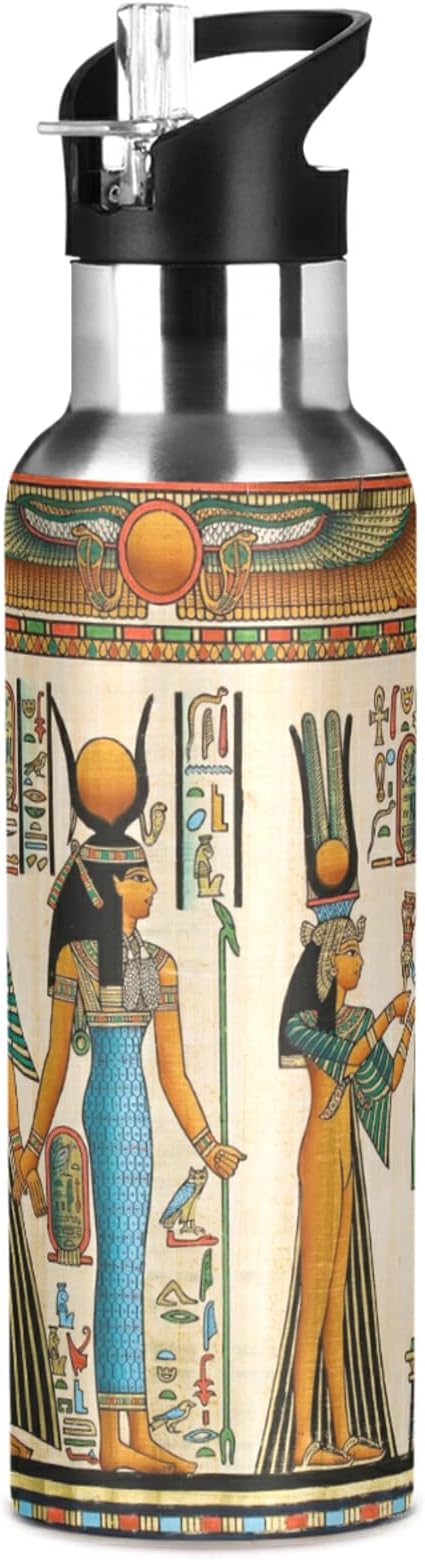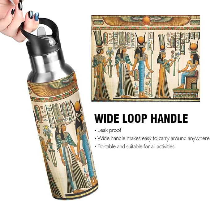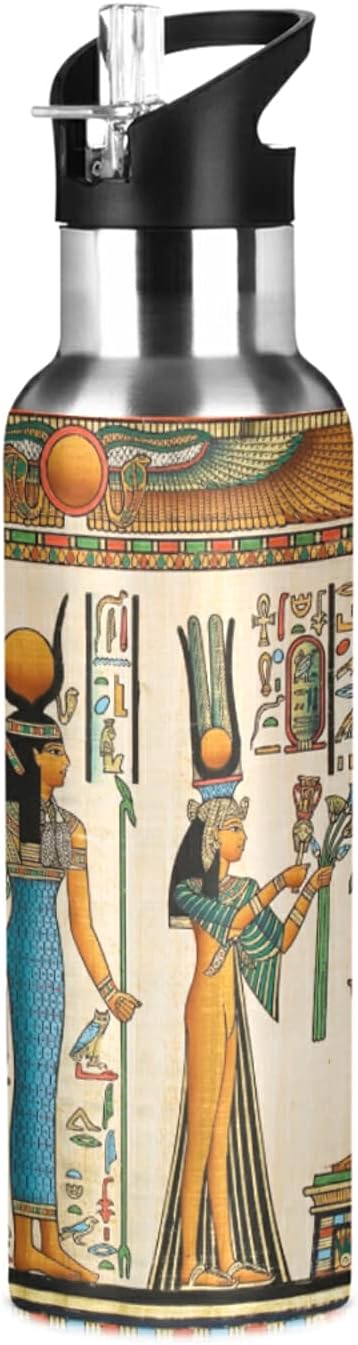 Blueangle 32 OZ Queen Of Egypt Water Bottle with Straw, Sports Water Bottle BPA Free Stainless Steel Water Jugs for Gym, Kitchen, Working, Outdoor(27)