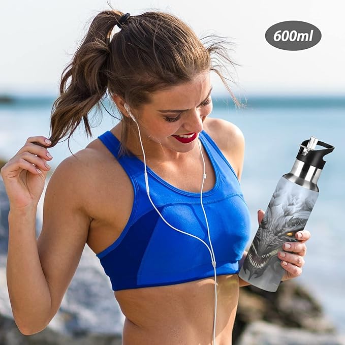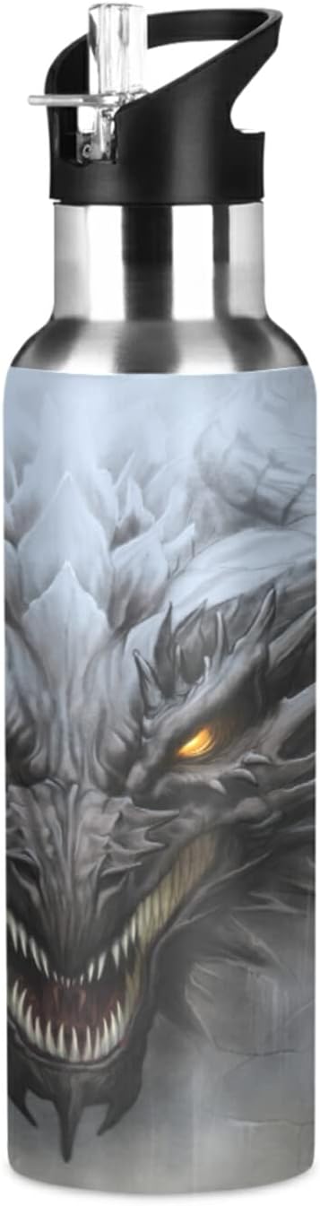 Blueangle 20 OZ Scary Dragon Water Bottle with Straw, Sports Water Bottle BPA Free Stainless Steel Water Jugs for Gym, Kitchen, Working, Outdoor(971)