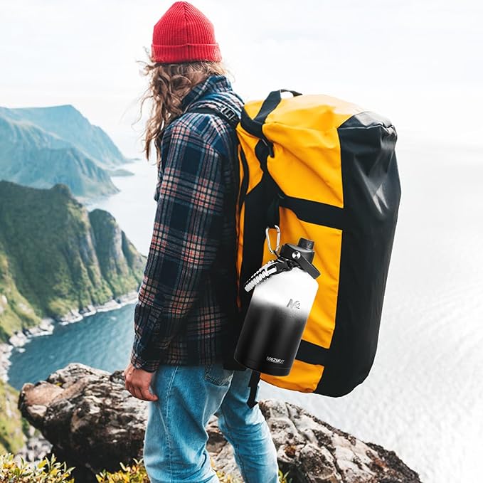 - 【Food Grade Material】64 oz insulated water bottle is made of 18/8 food grade 304 stainless steel,BPA-free which provides a healthy drinking experience for users.Matte finish with powder coating offers a firm grip against slips, don't worry about peeling or rusting.