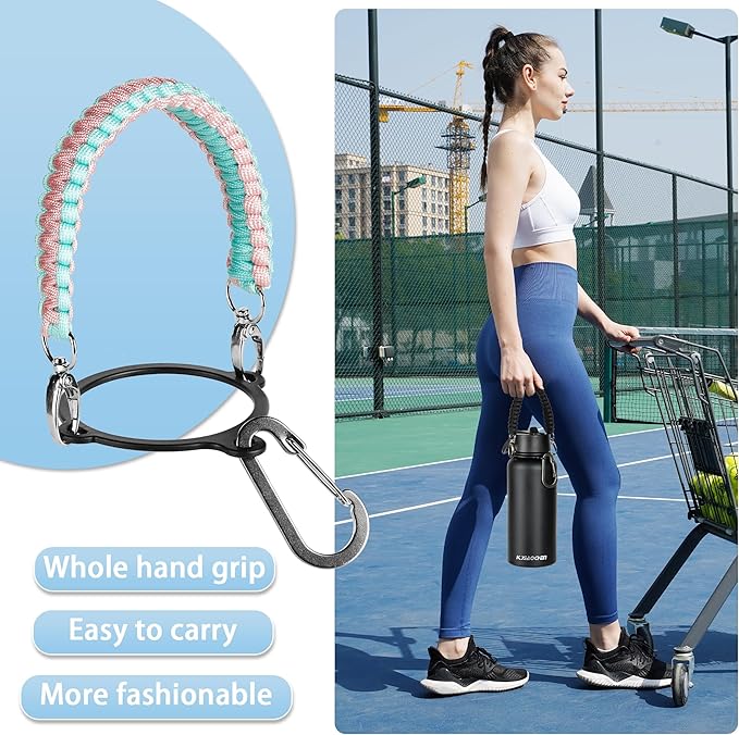 - Paracord Handles & Strap:32 oz water bottles Equipped with high quality colorful nylon braided Paracord Handles, bid farewell to the uncomfortable grip feeling, make the lifting more relaxed! Insulated 32 oz water bottle also comes with a 70.86 inches retractable strap, which can be worn directly on the body to free your hands and allow you to ride, climb, hike, rock climb and surf freely.