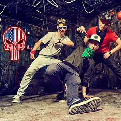 - 1. Eye-Catching Skull & Flag Design Unique American flag skull pattern with vivid red LED neon glow instantly grabs attention, you can use led sign indoors to increase the joy of life. Create a scary atmosphere for your Gaming Room Decoration bars, man caves, or dorms.
