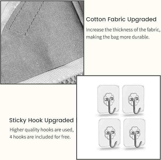 - 【Upgraded Material】We had upgraded the Cotton Linen Fabric and sticky hook quality, making the wall storage bag more durable to hang. Its inner with waterproof type coating, hanging pockets can be used to store items in the bathroom.