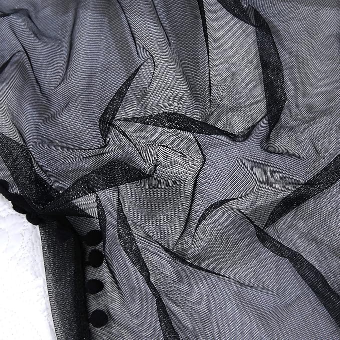 Akiky Pom Pom Canopy Bed Curtains Princess Bed Canopy Scarf for Full/Queen Metal Bed Frame,Wood Frame Bed-2 Panel Sheer Canopy Curtain(Black)