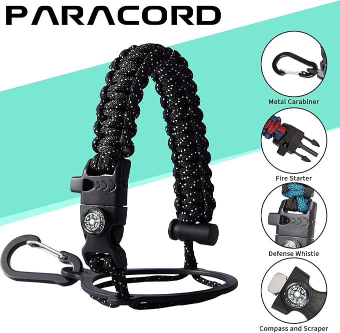 - UNIQUE PARACORD—Perfect Accessories: bright color paracord matches the flask water bottle to give you a youthful vibe while adding a personal style. It comes with a compass, safety loop, metal carabiner, flint, igniter, and whistle to become your survival tool for your wild adventures.