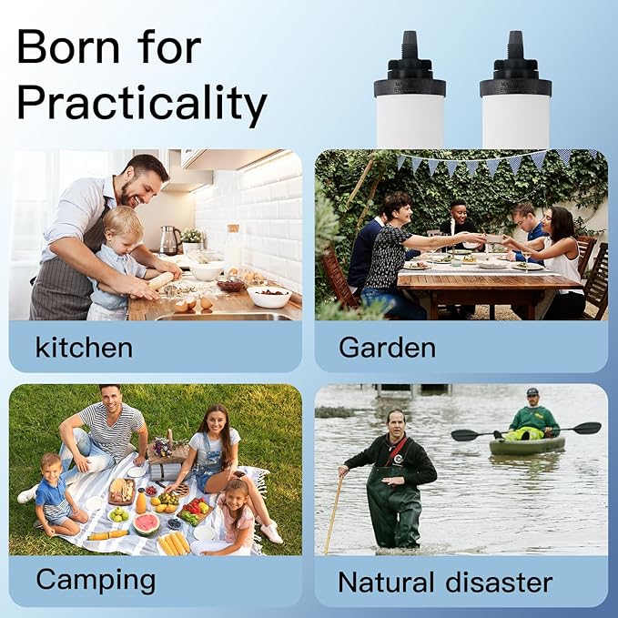 - THE CERAMIC FILTER ELEMENT CAN BE CLEANED & LONGER FILTER LIFESPAN: Proper cleaning of the filter element can reduce secondary pollution and prolong the service life of the filter element. purification elements can provide up to 8000 gallons of drinking water, and the service life of a single filter element is 6000 gallons (According to different water quality, the lifespan of the filter element would be a little different).