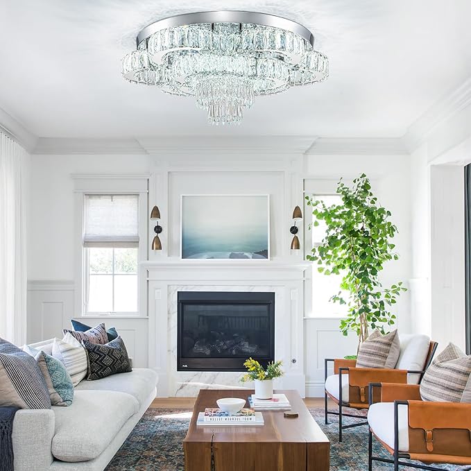 - -Wide Applications: it’s perfect to put this flush mount chandelier in large space or low ceiling such as your living room, dinning room, kitchen, bedroom, closet, foyer, porch, farmhouse, hallway, hall, study etc.