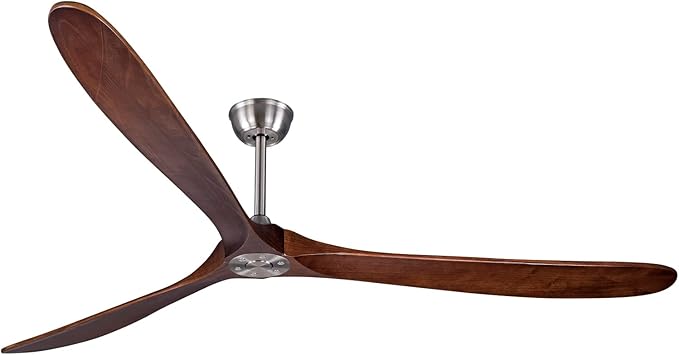 Bigzone 88" Indoor ceiling fan with Remote Control, DC Motor Quiet Energy Saving,3 Brown Balsa Wood Blades,Outdoor/Indoor Ceiling Fan, Metal Brushed Nickel