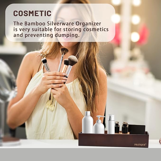 - 【PRACTICAL STORAGE SPACE】PRATIQUE drawer organizer can reduce clutter and avoid desperately searching for lost items. Ensure drawers in the kitchen and beyond are neat and organized.The flatware organizer is made of bamboo, which has a neutral light wood color and it will look beautiful as your kitchen, closet, garage and office drawer.