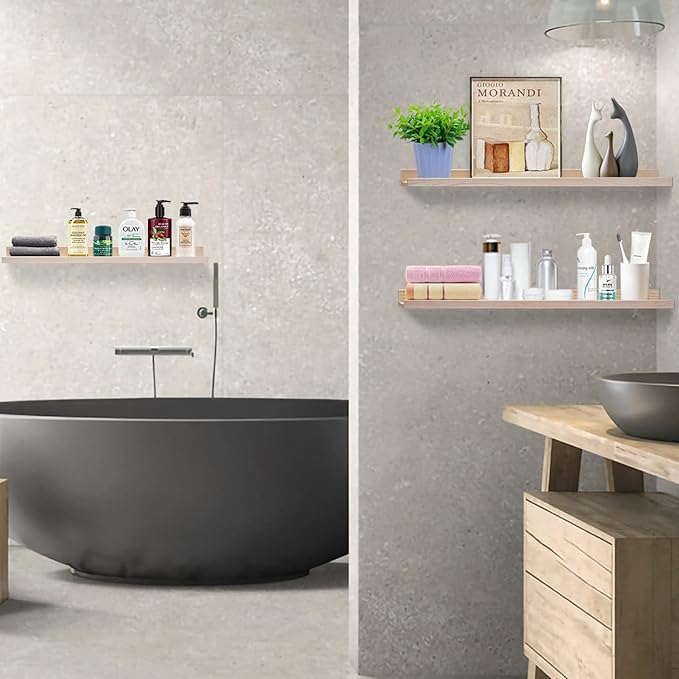 - Natural Wood Shelves: Our wall shelves are made of healthy and odorless natural wood. As a result, they are sturdy enough to store your favorite collectibles, family photos, children's books or toys, decorative items, cosmetics or small greenery.