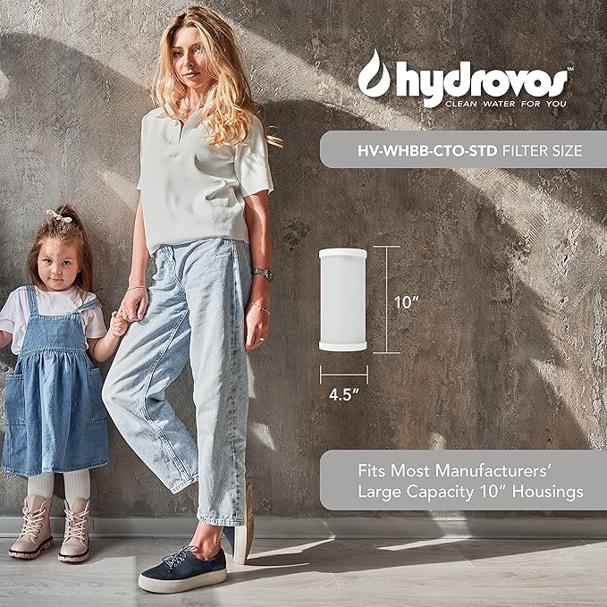 - BROAD APPLICABILITY – Hydrovos HV-WHBB-CTO-STD Carbon Block filters fit Hydrovos 10" Large Capacity housings, HV-WHBB10-PRV, as well as a wide variety of large diameter 10" length housings. The filter size 4.5" x 9 7/8" is an industry standard followed by most manufacturers. Feel confident in your replacement filter choice!