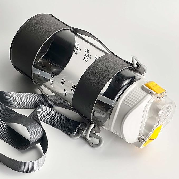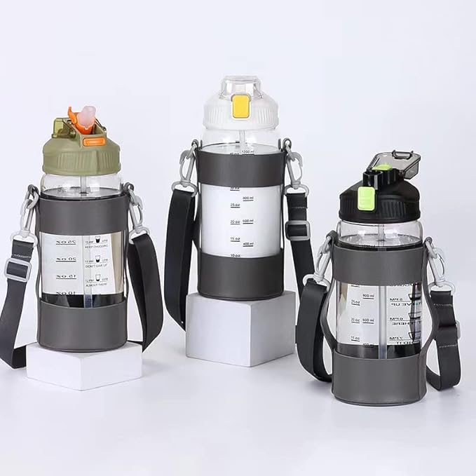 - Fashionable Carrier Bag with Adjustable Shoulder Strap - Easy to carry to look good. Use this glass water bottle at home, office, take it to the gym or anywhere. The adjustable strap allows for that hands free power walk. Drinking water has never looked more fashionable!