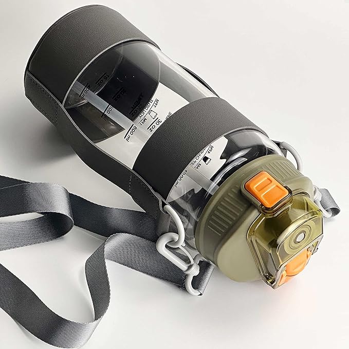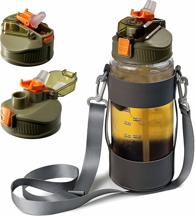 - Fashionable Carrier Bag with Adjustable Shoulder Strap - Easy to carry to look good. Use this glass water bottle at home, office, take it to the gym or anywhere. The adjustable strap allows for that hands free power walk. Drinking water has never looked more fashionable!