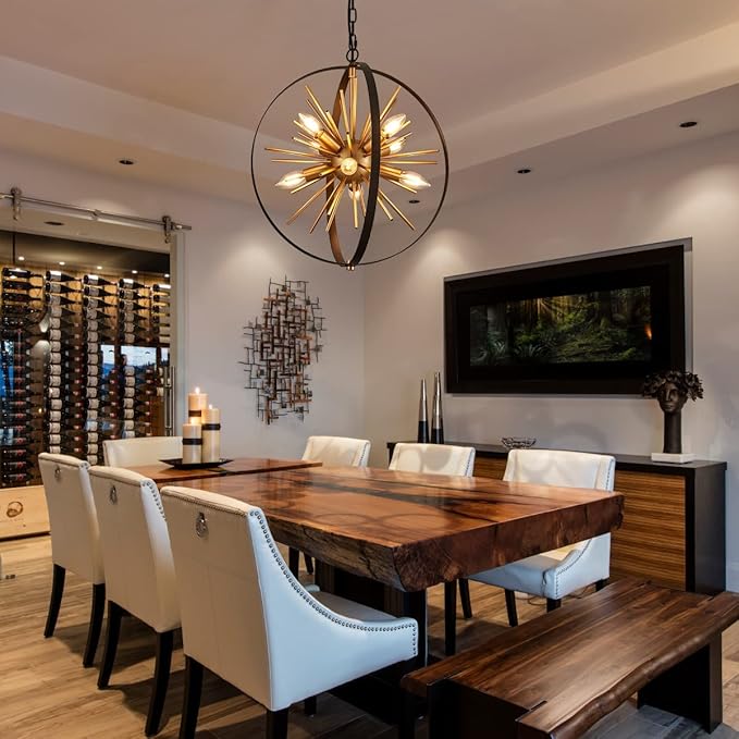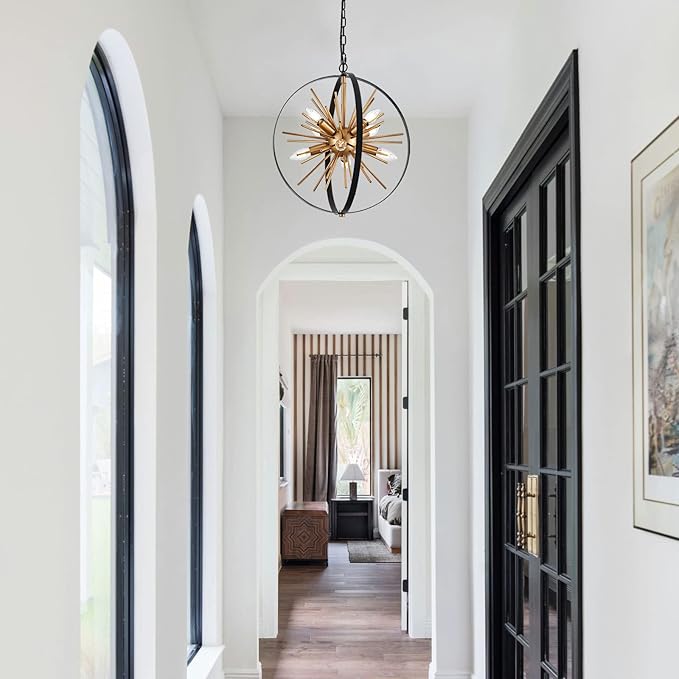 - 【Stylish Design】Check out the Black and Gold Sputnik Chandelier, whose stunning spherical shape resembles a well-preserved firework. When lit, it's like having a breathtaking firework show in your room. Perfect for your living room, kitchen island, dining room, hallway, stairway, entryway, café & restaurant.