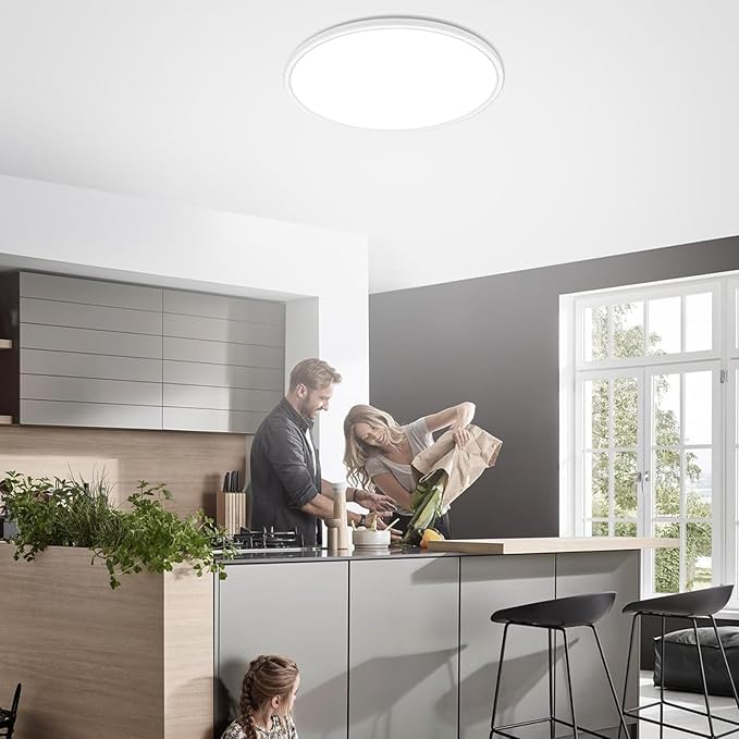 2PACK Flush Mount LED Ceiling Light Fixture Black, 15.8Inch 36Watt, Dimmable & 3000K-4500K-6000K 3 Color Selectable Ceiling Lamp 4000LM Low Profile Ceiling Light for Kitchen Bedroom Hallway, White