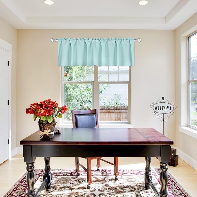 Aqua Blue Valance for Windows 72x18 Inch Solid Thermal Insulated Blackout Rod Pocket Kitchen Short Curtain Toppers Valance for Bathroom Living Room 1 Panel