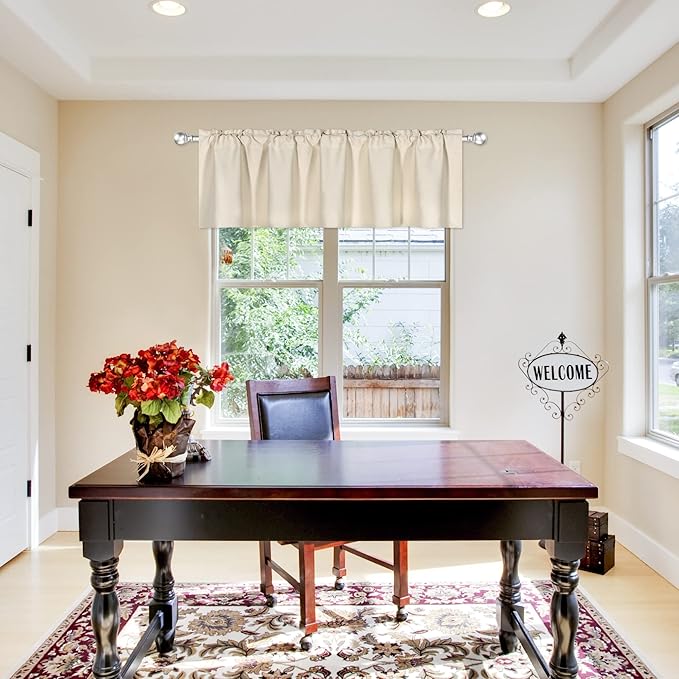 Beige Valance for Windows 72x18 Inch Solid Thermal Insulated Blackout Rod Pocket Kitchen Short Curtain Toppers Valance for Bathroom Living Room 1 Panel