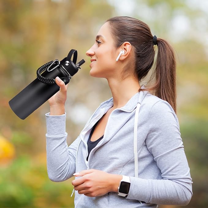 - SUPER DEAL COMBO - Buy one 40 oz insulated water bottle, get 9 accessories (2 x lids(BPA Free), 1 x paracord handle, 2 x straws(BPA Free), 1 x carrier bag, 1 x shoulder strap, 1 x protective silicone boot, 1 x straw brush). We offer LIFETIME WARRANTY and our friendly customer service is always here